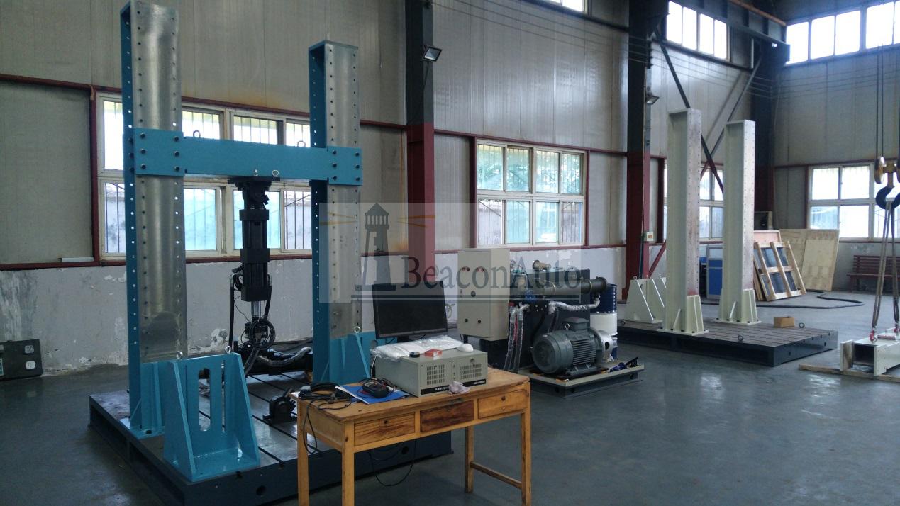 該系列產(chǎn)品具有輸出力范圍廣,控制精度高,使用方便,可靠性高等特點(diǎn)。該系統(tǒng)在研制、開發(fā)過程中吸取國(guó)際先進(jìn)電液伺服控制技術(shù),結(jié)合國(guó)內(nèi)用戶的實(shí)際使用狀況設(shè)計(jì)而成。伺服作動(dòng)器、伺服動(dòng)力液壓站、力加載框架等關(guān)鍵部件為我公司設(shè)計(jì)制造,伺服閥、傳感器、密封件等關(guān)鍵外購(gòu)件均選用國(guó)際、國(guó)內(nèi)同類產(chǎn)品的著名品牌產(chǎn)品,大大提高了系統(tǒng)的穩(wěn)定性和可靠性,試驗(yàn)機(jī)的整體性能與國(guó)際先進(jìn)產(chǎn)品技術(shù)水平相當(dāng)。 該試驗(yàn)系統(tǒng),既能低周疲勞試驗(yàn)、程序控制疲勞試驗(yàn),也能進(jìn)行靜態(tài)的恒速率、恒應(yīng)變、恒應(yīng)力控制下的試驗(yàn)和各種常規(guī)的力學(xué)性能試驗(yàn),還可進(jìn)行斷裂力學(xué)試驗(yàn),自然力量模擬試驗(yàn),如地震、風(fēng)浪等。根據(jù)需要也可以進(jìn)行部分的工況模擬等,因此有著其它任何種類的試驗(yàn)機(jī)所不能比擬的優(yōu)勢(shì); 在實(shí)際測(cè)試方面我們有針對(duì)結(jié)構(gòu)試驗(yàn)而設(shè)計(jì)的大噸位作動(dòng)器,作動(dòng)器形式有單出桿和雙出桿兩種結(jié)構(gòu)形式,輸出力范圍從100kN到10000kN,行程可根據(jù)用戶實(shí)際需求而定,作動(dòng)器標(biāo)準(zhǔn)行程200--500mm(±100mm/±250mm),根據(jù)結(jié)構(gòu)試驗(yàn)要求可配置不同規(guī)格的作動(dòng)器,廣泛應(yīng)用于車輛車架,、復(fù)合結(jié)構(gòu)件材料的靜態(tài)力學(xué)性能試驗(yàn),包括拉伸、壓縮、三點(diǎn)四點(diǎn)彎曲試驗(yàn)、;也可以進(jìn)行結(jié)構(gòu)件的疲勞試驗(yàn),如長(zhǎng)平衡桿,轉(zhuǎn)臂,花鍵軸等。從簡(jiǎn)單的靜態(tài)結(jié)構(gòu)試驗(yàn)到原尺寸大型構(gòu)件路普模擬試驗(yàn),從單通道試驗(yàn)到大型構(gòu)件試驗(yàn)室配置,從整車車身到三軸橡膠套試驗(yàn),該系列設(shè)備均可為你提供極大的幫助,可以助你驗(yàn)證新概念、開發(fā)更新、更有效、更經(jīng)濟(jì)的土木材料和結(jié)構(gòu)。 汽車配件三角臂反復(fù)加載疲勞試驗(yàn)機(jī)主要組成部分有: 1.自平衡門式反力框架、1套 2.伺服作動(dòng)器:20KN雙出桿作動(dòng)器2只; 3.伺服動(dòng)力液壓站;大流量遠(yuǎn)程控制伺服液壓系統(tǒng),包括分油閥塊和管路。 4.?dāng)?shù)據(jù)采集控制系統(tǒng):三多通道靜載控制器,包括擴(kuò)展采集和軟件 5.各路力傳感器和位移傳感器 6. 根據(jù)需要配置各種球鉸支座 汽車配件三角臂反復(fù)加載疲勞試驗(yàn)機(jī)主要技術(shù)指標(biāo) 1l最大垂向負(fù)荷: 拉壓雙向20kN x1 2l最大橫向負(fù)荷: 拉壓雙向20kN x1 3l試驗(yàn)力精度: ±0.5%; 4l試驗(yàn)力測(cè)量范圍: 2%~100%FS(全程不分檔) 5l試驗(yàn)力分辨率: 500000碼,且全程分辨率不變 6l水平/垂向測(cè)試頻率: 0.1-15hz (15hz 對(duì)應(yīng)5mm) 7l垂向作動(dòng)器行程: ±100mm 8l橫向作動(dòng)器行程: ±100mm 9l位移分辨率: 0.001mm; 10l位移測(cè)量精度: ±0.5%; 11l進(jìn)口內(nèi)置式位移傳感器精度: 優(yōu)于±0.1%; 12l過載保護(hù): 105%過載保護(hù)(無(wú)變形、無(wú)機(jī)械損傷) 13l整機(jī)噪聲: 不超過70dB 14l測(cè)力方式:采用高精度負(fù)荷傳感器測(cè)力 美國(guó) 15 控制方式:液壓加載,電液伺服閉環(huán)控制,屏幕直接顯示試驗(yàn)結(jié)果 16 液壓動(dòng)力源:封閉靜音結(jié)構(gòu) 可移動(dòng)式 17 管路和分油器:適應(yīng)場(chǎng)地結(jié)構(gòu)的高壓H型膠管及接頭 18 遠(yuǎn)程:遠(yuǎn)程升降控制,遠(yuǎn)程伺服動(dòng)力源控制 19 總線:多級(jí)多路輸出輸入線路總裝 更多汽車配件三角臂反復(fù)加載疲勞試驗(yàn)機(jī)資料請(qǐng)電話聯(lián)系我們。