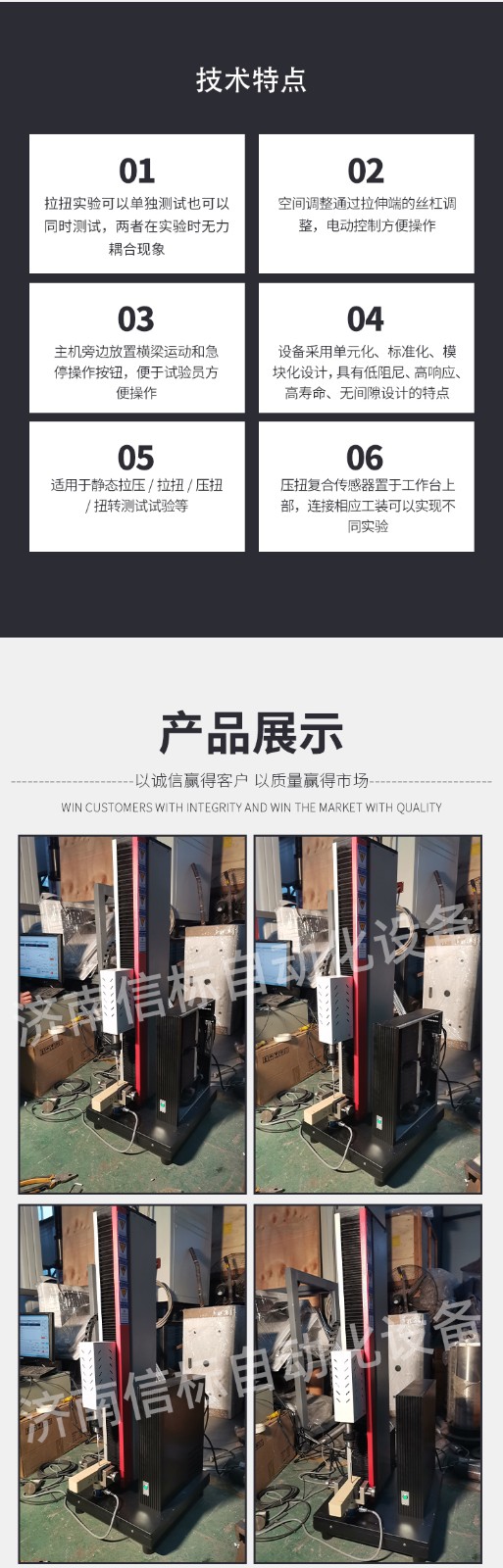 濟南信標自動化設備有限公司主要生產:動靜態萬能疲勞試驗機,接骨板彎曲試驗機,縫合線拉伸疲勞試驗機,髖膝關節磨損試驗機,電子萬能試驗機、液壓萬能試驗機、巖石三軸、四軸,電液拉力試驗機,材料試驗機,高低溫蠕變,高低頻疲勞,拉伸、扭轉、杯突等二十多個系列兩千多個的品種。