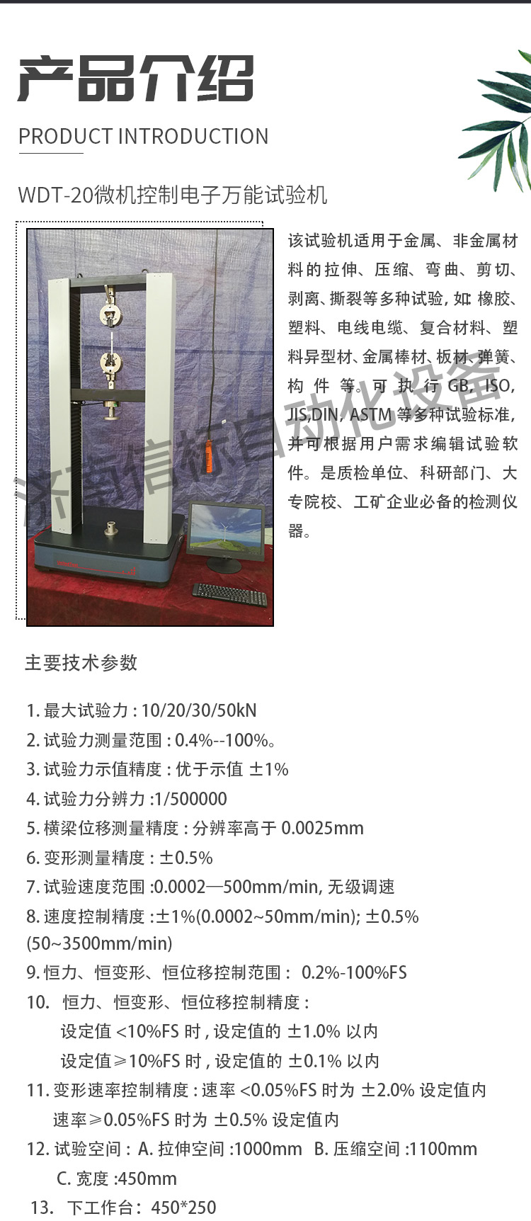 帶大變形引伸計門式電子萬能拉伸試驗機適用標準